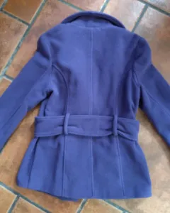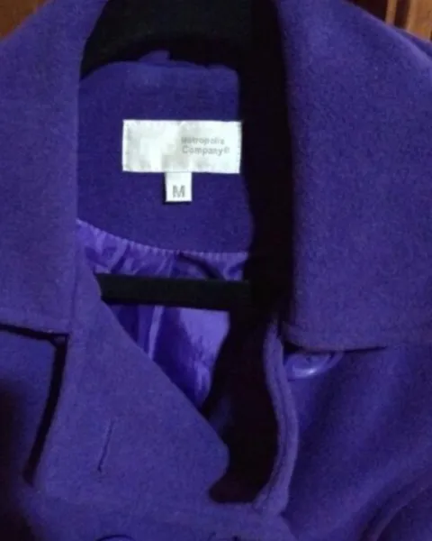 Abrigo corto Metropolis, color morado, forro interior, cinturon que abrocha en botones, en perfecto estado.