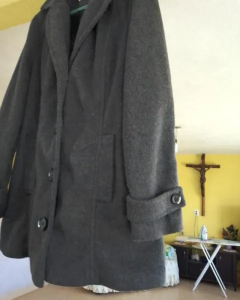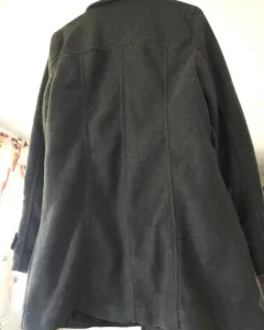 Bonito abrigo color negro, no tiene ningún detalle solo de uso, realmente no se uso mucho, es talla grande pero igual queda a una mediana.