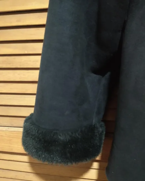Abrigo negro con forro interior de peluche, muy calientito, peluche en los puños, en perfecto estado, dice talla M pero viene amplio también queda a L.