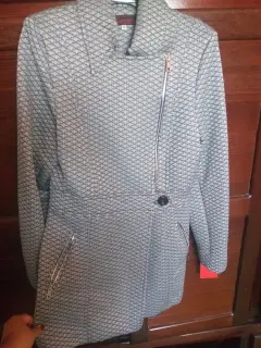 Abrigo moteado negro con blanco e hilo plateado NUEVO. Dice talla 36 pero viene reducido, yo calculo 2 tallas.