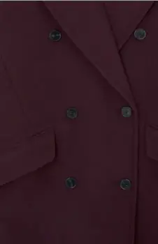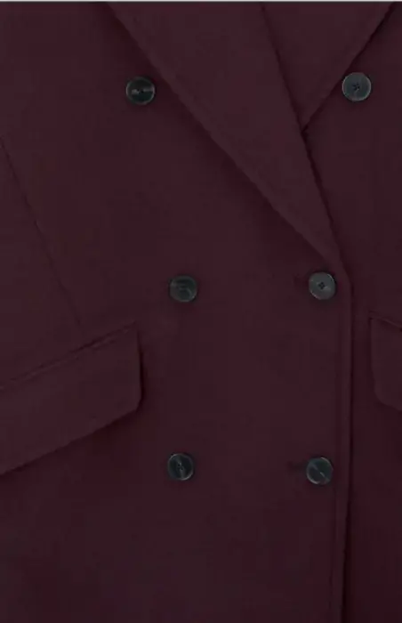 Abrigo largo color vino, es cruzado con botones al frente. La talla es chica pero como es over size le puede quedar también a una mediana.