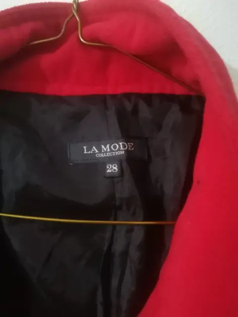 Abrigo rojo para dama, talla 28, cuello largo, forro negro en interior, usado en buen estado