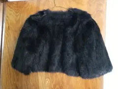Abrigo para fiesta de noche, peludo, negro, corto tiene unas pequeñas mangas y forro por dentro, es muy elegante y bonito