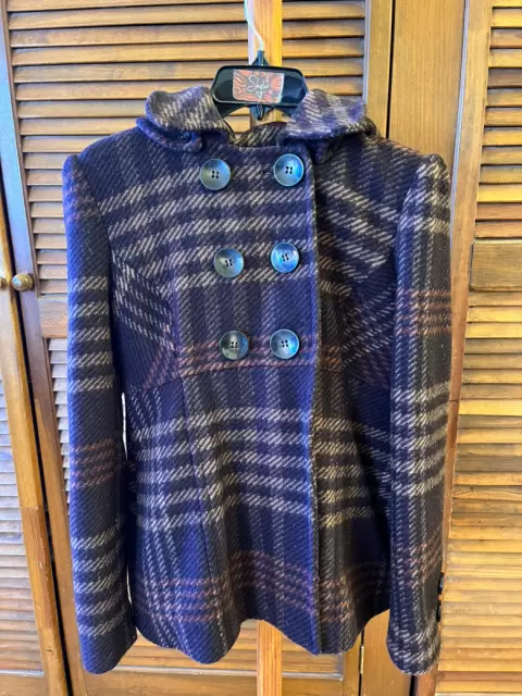 Abrigo Shyla Cafe con morado. Precioso abrigo marca Shyla talla S en Perfecto estadoTiene gorra con botones para poner y quitar Tiene botones grandesEs una excelente opción para ropa formal o casual