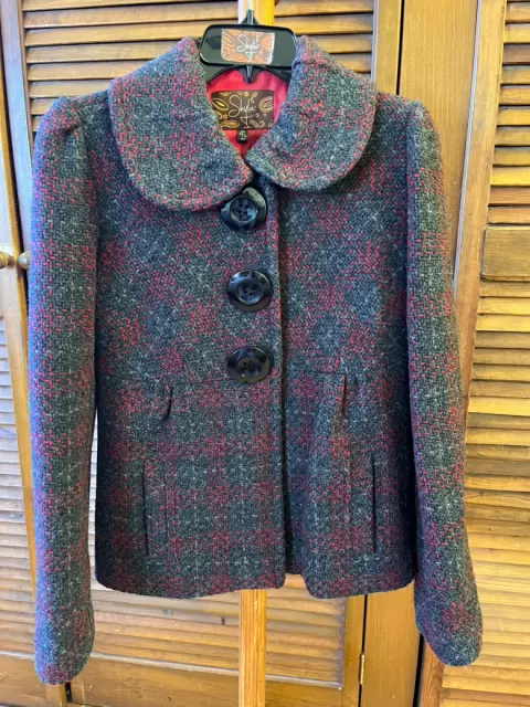 Abrigo Shyla gris con vino. Elegante abrigo marca Shyla en talla S con botones grandes en color negro Excelentes condiciones Se ve increíble con ropa casual o formal