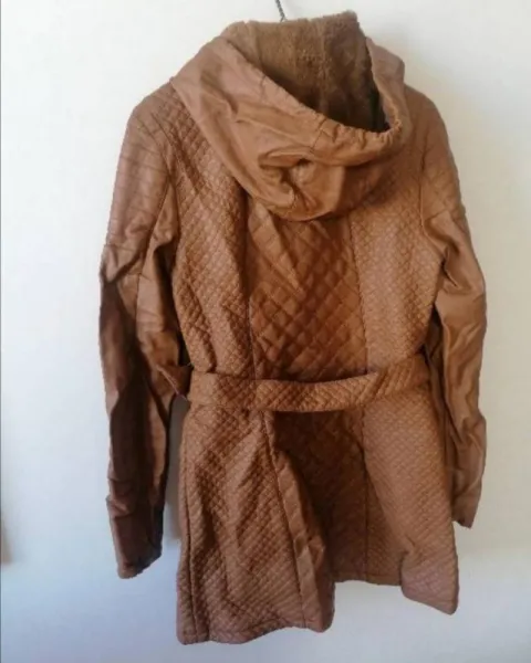 Abrigo tipo piel. Hermoso abrigo afelpado, con gorro que puedes quitar, llega a las pompas y tiene cinturón