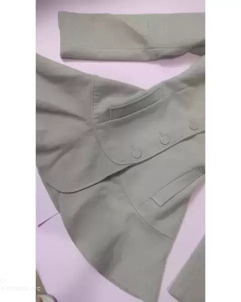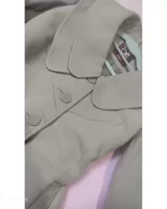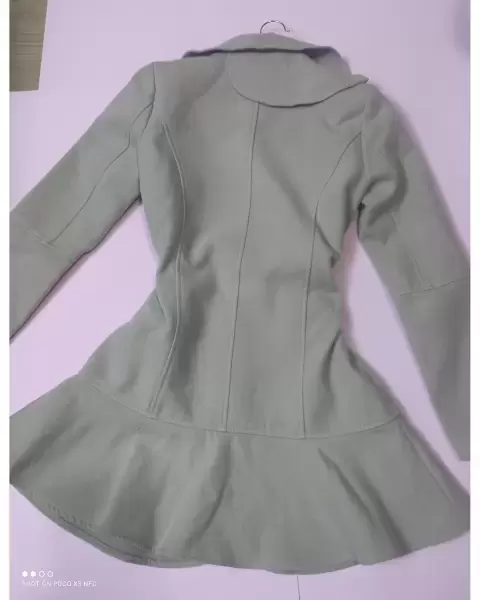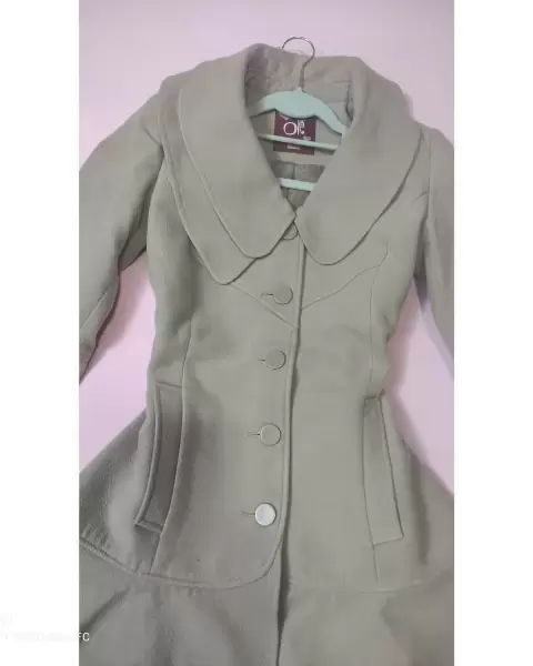 Abrigo super coqueto tipo vestido color arena.Tiene botones enfrente y el cuello peculiar, bolsas en los costados y forma olan en la parte inferior.MedidasHombro 39 cmAxila 44 cmCintura 39 cmLargo 77 cmNo estira