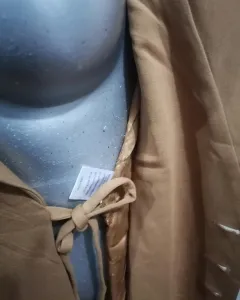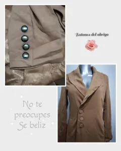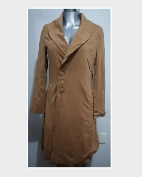 Hermoso Abrigo café, con forro, botones en manga que dan toque elegante, los botones delanteros son de la misma tela, tiene para que añadas un cinturón a tu gusto, puede ser también vestido xq tiene forro, tiene una cinta que cruza a la perfección la prenda. Medidas largo 103cm, largo Manga 63cm, axila a axila 50cm
