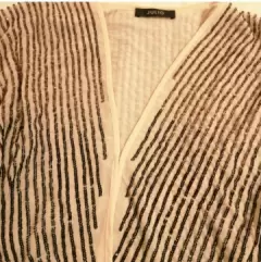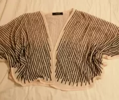 Bellísimo torerito o capita, excelente material con pequeñas lentejuelas en color dorado y la capa es color salmón, dice talla única pero le queda como a una M y L, en verdad vale mucho la pena, es ligera.