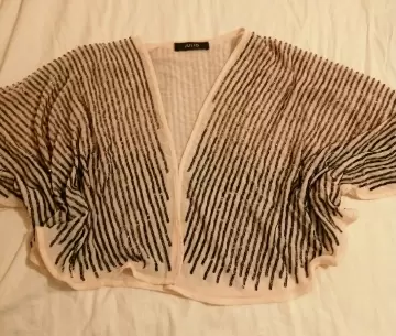 Bellisima capa o torerito Julio!!. Bellísimo torerito o capita, excelente material con pequeñas lentejuelas en color dorado y la capa es color salmón, dice talla única pero le queda como a una M y L, en verdad vale mucho la pena, es ligera.
