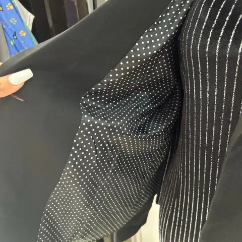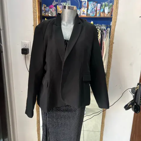 Blazzer XXL de excelente calidad no tiene ningún detalle viene forrado internamente súper elegante no tiene ningún detalle esta increíble puede quedar a talla extragrande cualquier duda proporciono medidas