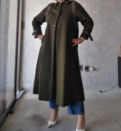 Bonito abrigo manga ¾. Abrigo con mangas ¾, moderno y elegante, aplicaciónes con piel en mangas y hombros. Lo puedes usar de forma casual o de vestir.