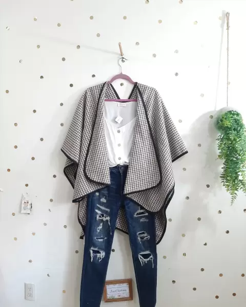 Haz q tú outfit tenga mucho estilo con este bellísima capa perfecta para esta temporada de frío!!Totalmente nueva!!!Tejido suave, muy cómoda y muy calientita!!Diseño súper lindo en tonos beige y café fuerte!!Unitalla queda desd talla XS hasta XL !! Checa mi clóset cuento con más modelos disponibles!! Con gusto resuelvo cualquier duda!!