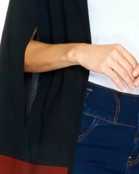 Capa Negra y Vino Unitalla. cuello redondo y diseño sin manga y con abertura, muy versátil y fácil de combinar, su tela es muy ligera y se puede lavar en casa, aunque es Unitalla yo la recomiendo para alguien talla XL ya que tiene un corte amplio