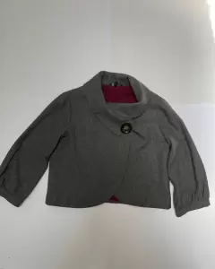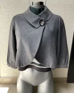 Capa corta en color gris, manga tres cuartos, está súper lindo, en Perfecto estado, es calientita