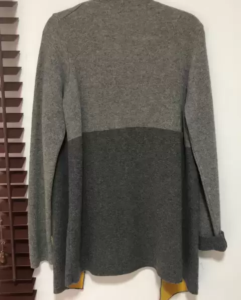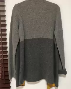Cárdigan de lana bicolor. Cárdigan minimal bicolor Gris-MostazaLa etiqueta dice talla M66% lana, 29% poliamida, 4% otras fibras, 1% elastanoCon solapa