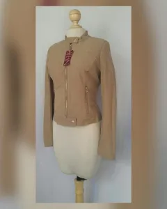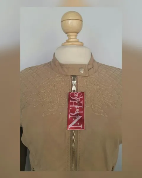 Cazadora en fake fur efecto ante estilo biker color OCRE, c/bordado en zona frontal y espalda, cuello redondo, cierre p/cremallera tono dorado, 2 bolsillos vivo c/cremallera, manga larga y forro peluche interior. Talla G. Dimensiones cms: 39 hombro, 52 axila, 44 cintura, 47 zona baja, 55 largo, 63 largo manga. 100% poliuretano. P/lavado en seco.