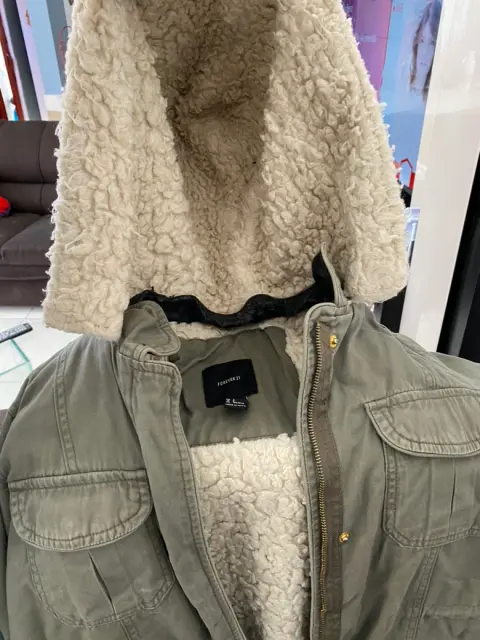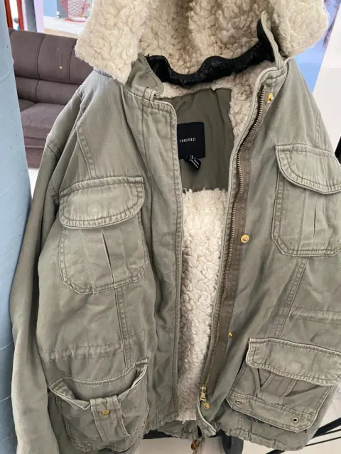 Cazadora Forever 21. Cazadora de temporada, calientita!Color militar, abrigo muy cómodoTalla S da a M