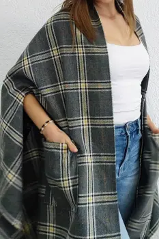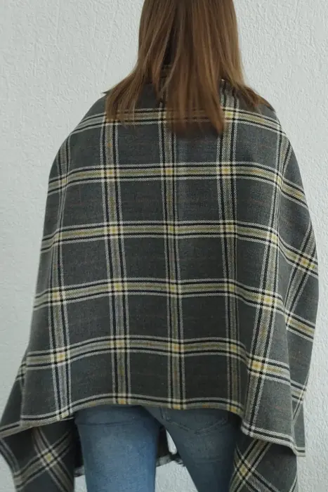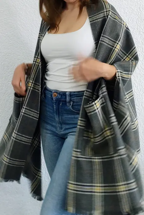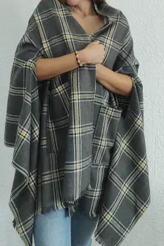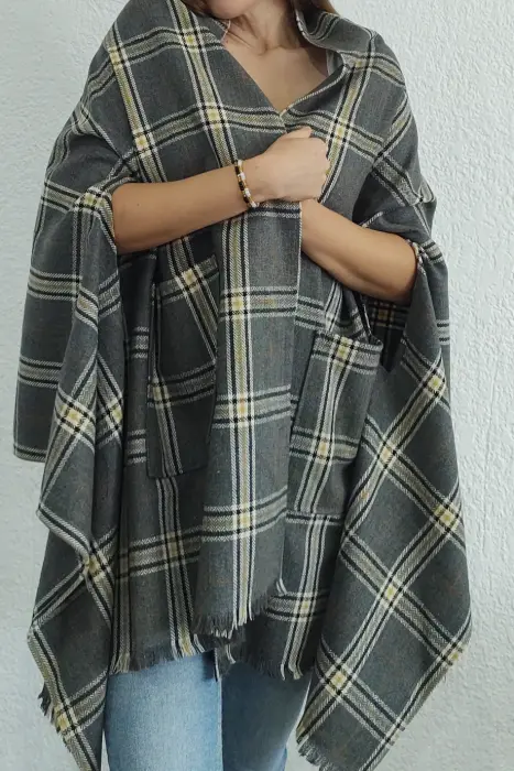 Chal gris cuadros. NUEVA, totalmente deliciosa para estos fríos, ruana gigante textura lana!Es calientita, muy calientita, abrigadora. Tipo chaleco con bolsillos. Te va a encantar; con todas las combinaciones la podrás usar.
