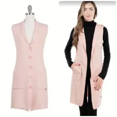 Chaleco largo con bolsas, color rosa de tejido de punto fino suave, unitalla