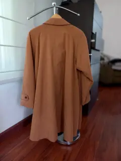 Chaqueta café tipo abrigo, linea A, de gamuza. Ideal para el clima de México, ya que pueden utilizarse en época de extremo frío o ligero.
