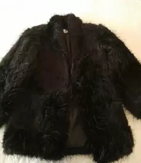 Hermoso, elegante y abrigador saco negro corto de peluche en perfectas condiciones
