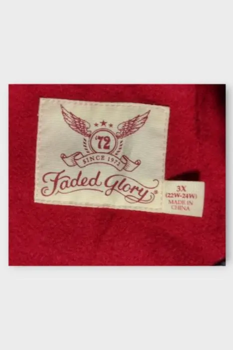 FADED GLORY Abrigo Dama Poliéster Rojo 3X XXGAbrigo marca FADED GLORY 94% Poliéster 6% Otras FibrasMarca: FADED GLORYOrigen: ChinaMaterial: 94% PoliésterTalla: 3X XXGEstilo: FormalPatrón: LisoColor: RojoCierre: Botón Pecho: 72 cmLargo: 78 cmHombro: 30 cmManga: 65 cmRopa de USO en muy buen estado