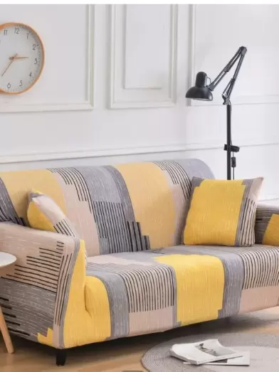 Funda de sofá elástica con estampado de rayas con 1 pieza funda de cojín 1 sillón individualFunda de sofá elástica con estampado de rayas con 1 pieza funda de cojín 2 sillones