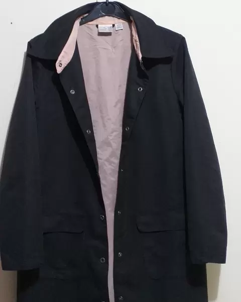 Bonita gabardina en excelente condiciones color negro, ligera y atemporal. Luce muy elegante y combina perfectamente con cualquier outfit. Ya NO cuento con su cinturon. Queda perfecta a una S o M.*Sin detalles de uso*Color 8 de 10*Se lava en casa*Se entrega limpia
