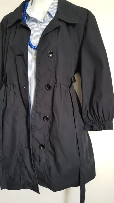 Gabardina azul marino talla L. Gabardina azul marino talla L mangas 3/4, con forro por dentro📣👀 se encuentra un poco deslavada, con el color al 80% aprox📣👀
