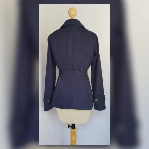 Gabardina corta ligera, cuello clásico c/solapas muesca, cierre p/botonadura doble, charreteras en hombros, cinturón mismo tejido y trabillas, manga larga terminada en tira c/botón, Bies en Fake Fur zona cuello, frontal, trabillas, cinturón y mangas, y forro interior. Talla G. Dimensiones cms: 39 hombro, 51 axila, 43 cintura, 54 zona baja, 71 largo, 64 largo manga. 90% algodón, 5% poliuretano, 5% elastano. Para lavado en casa.***NO ES IMPERMEABLE***