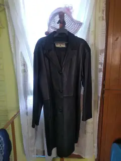Gabardina de piel. Esta en Buen Estado, no tiene ningún detalle color negro, talla XL ( Mujer )