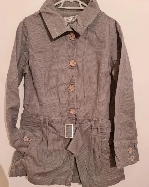 Gabardina Gris súper horma Cómoda!!. GABARDINA GRISESITA PRACTICA BUENA BONITA Y BARATA!!DELGADA NO ESTORBA!! SIN GORRO CUELLO ALTO AL GUSTO!! BOLSAS FRONTALES Y CINTURON / COSTURAS QUE HORMAN MUY BONITO TU CUERPO!!SIN DETALLE!!!MIDE 52CM ANCHO BUSTO X 78CM LARGO!! QUEDA A TALLA: 7,9 !!Checa las medidas! REGALITO SORPRESA !!
