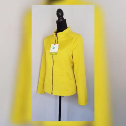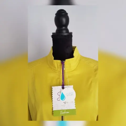 Gabardina lightwear (water resistant/breathable) color VERDE LIMA, cierre p/cremallera, cuello Perkins, 2 bolsillos vivo c/cremallera, tira trasera y forro de fantasía interior. Talla M. Dimensiones: 39 hombro, 53 axila, 48 cintura, 55 zona baja, 62 largo, 61 largo brazo. 50% poliéster, 37% algodón, 3% elastano. P/lavado en seco.***A pesar de que en las fotografías se aprecia la gabardina en color amarillo, el color es VERDE LIMA y es muy bello***Prenda tratada con nanotecnología que le permite soportar lluvias de ligeras a medias y ser totalmente transpirable y ligera.***