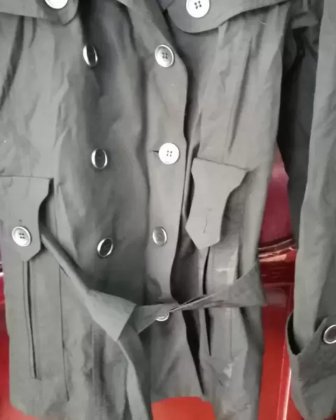 Gabardina negra, talla 30. En excelentes condiciones! La use una vez, le falta un boto, te mando el respuesto y tiene una pequeña mancha que en tintoreria se quita!! Precio a tratar... 😌