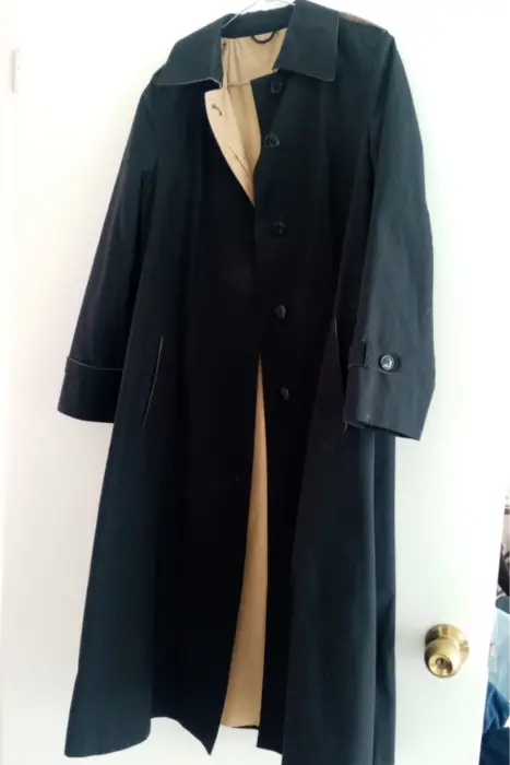Gabardina negra con forro beige hecha en Alemania en perfecto estado talla chica