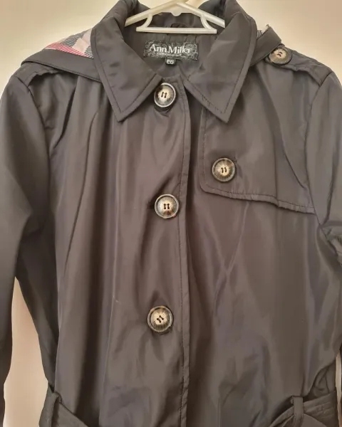 GABARDINA NEGRA!!CON GORRO CALIENTITA. HERMOSA CHAMARRA GABARDINA BONITO CORTE Y HORMA!!/TELA SINTETICA VIENE CON FORRO INTERNO!! ES CALIENTITA!! MIDE:57cm busto X 91cm largo/QUEDA A TALLAS:9,11!!/CHECA LAS MEDIDAS!Incluye cinturon y gorro!!Minimo detalle de descosido en manguita derecha casi imperceptible,ya que se le quitaron unas cintas anteriormente pero no se notan para nada!!! LISTA PARA QUE LA USES!!
