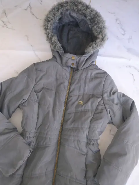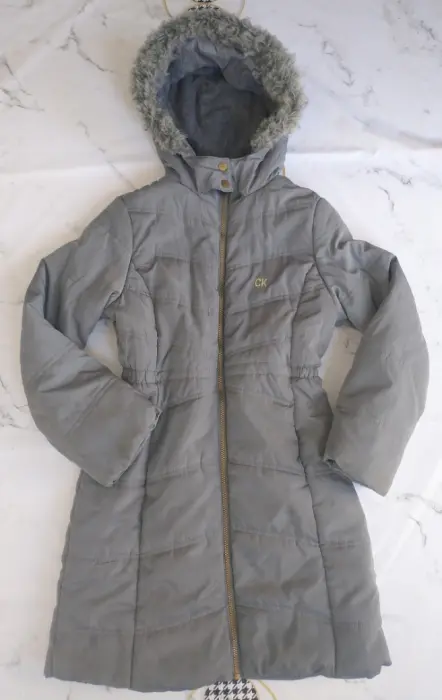 Hermosa chamarra parka CALVIN KLEIN. Hermosa chamarra, gris, es talla juvenil , pero queda a un talla S de dama, es usado, se conserva en buen estado tal cual se muestra en fotos.