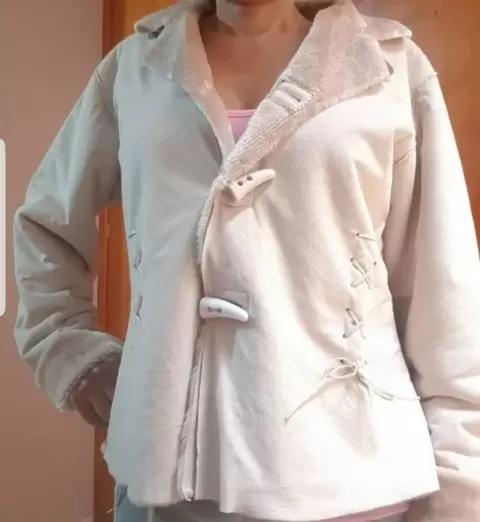 Casi nuevo, solo con una pequeña costura manual en mangas, cubre muy bien del frío, en las fotos puede distinguirse perfectamente como queda.