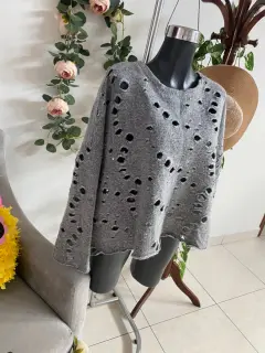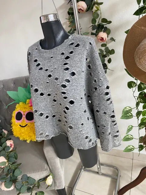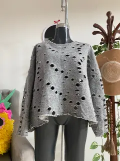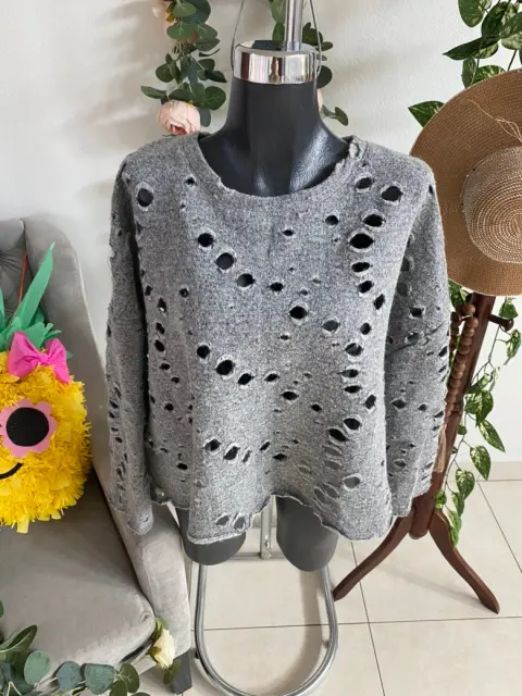 Jersey ZARA de lana punto “perforado” gris. Talla S (26). Oversize. •⊹٭𝐌𝐞𝐝𝐢𝐝𝐚𝐬:٭⊹•Axila a axila 78 cmLargo 52 cm🧵 54% poliéster, 32% lana, 14% acrílico🪡