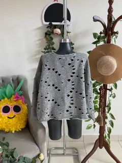 JERSEY ZARA LANA PERFORADO. Jersey ZARA de lana punto “perforado” gris. Talla S (26). Oversize. •⊹٭𝐌𝐞𝐝𝐢𝐝𝐚𝐬:٭⊹•Axila a axila 78 cmLargo 52 cm🧵 54% poliéster, 32% lana, 14% acrílico🪡