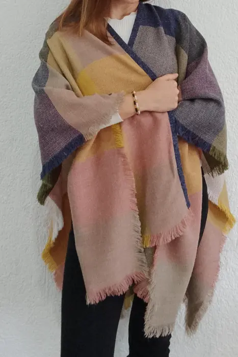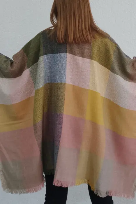 Mantón a cuadros fondo rosa. Delicioso Chal a cuadros, te va a encantar! Ideal para esta temporada de calor por la mañana, lluvia y frío por la tarde. 🌤️🌧️🌈Unitalla