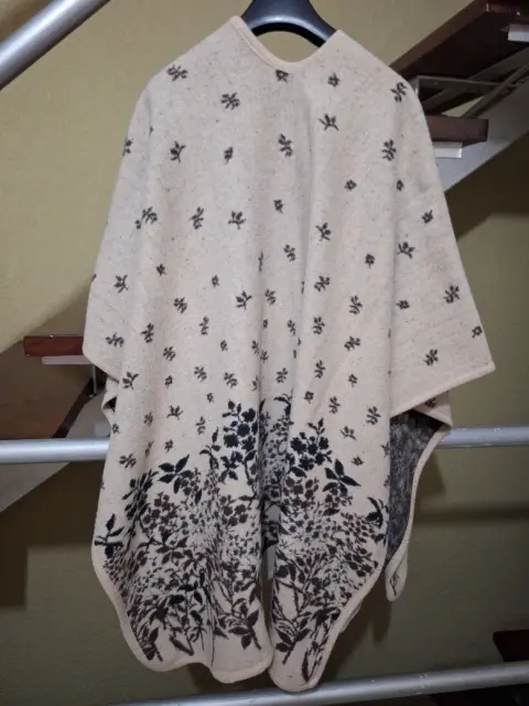 Poncho color capuchino con estampado en café, ligera composición 80%algodón 20%lana,abrigadora
