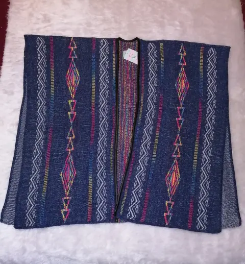 Poncho estilo abierto. Poncho estilo abierto, color azul con motivos multicolor, tejido suaveUnitalla entre M y G