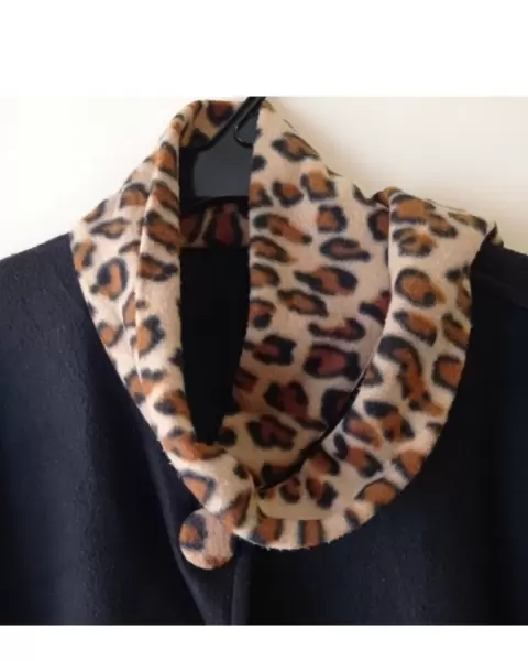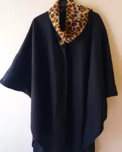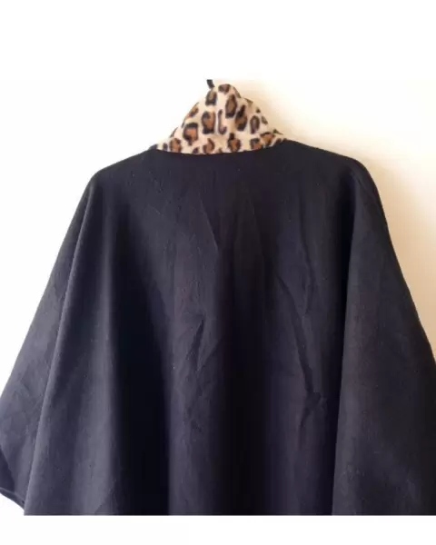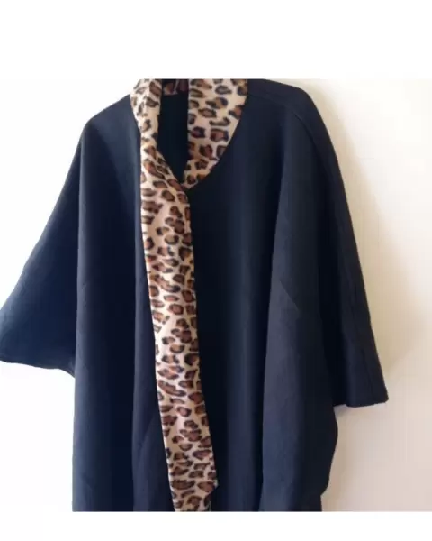 Poncho negro,con cuello animal print. Super bonito,es largo y de verdad te calienta mucho.Unitalla pero para mi gusto funciona mejor si eres entre talla L a 1XLas fotos no le hacen justicia,es color negro en todo su color
