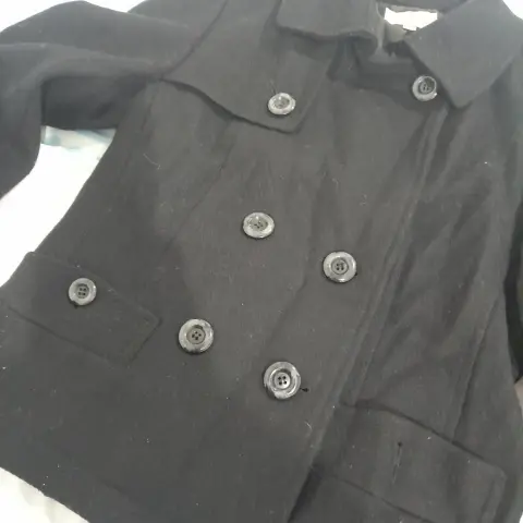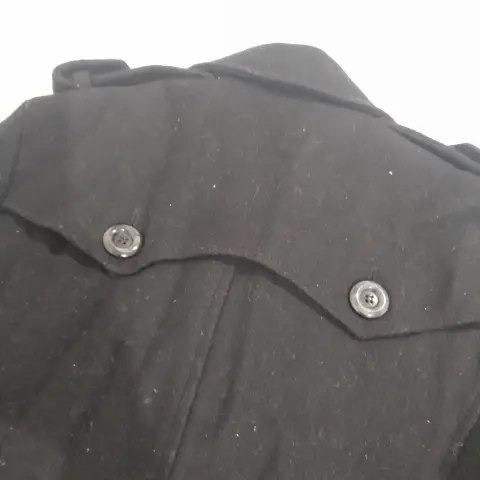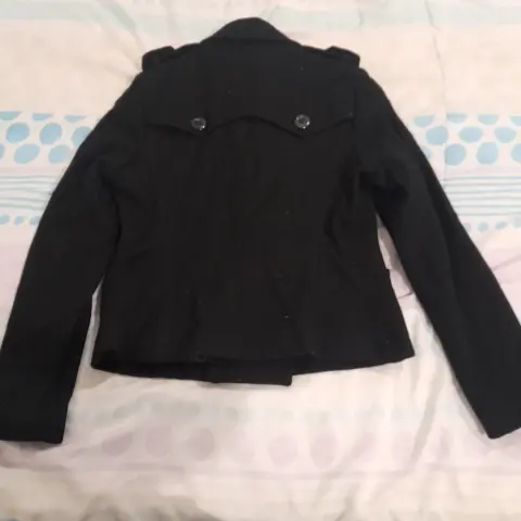 Hermoso y elegante. Saco negro metrópoli, todos sus botones, es M pero viene reducido. Trae un corte bonito qje se adapta al cuerpo
