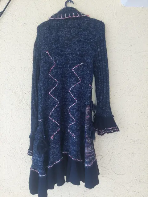 Suéter negro ⚫️ de punto , se cierra con 2 tiras delanteras se hace 1 nudo ,calientito