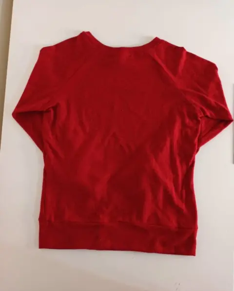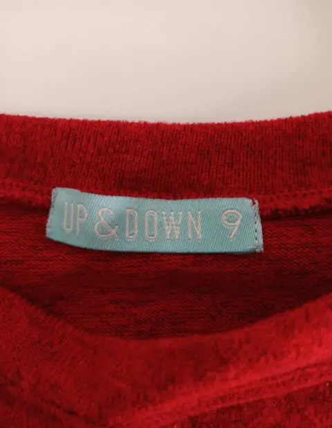 M Puesto una vezUp&down✨Suéter de tela de algodón, cuello circular, color rojo, con ligeros detalles negros.✅ MEDIDAS:- Largo: 56 cm.- Hombro: 33 cm.- Busto: 82 cm.- Cintura: 82 cm.- Largo manga: 53.5 cm