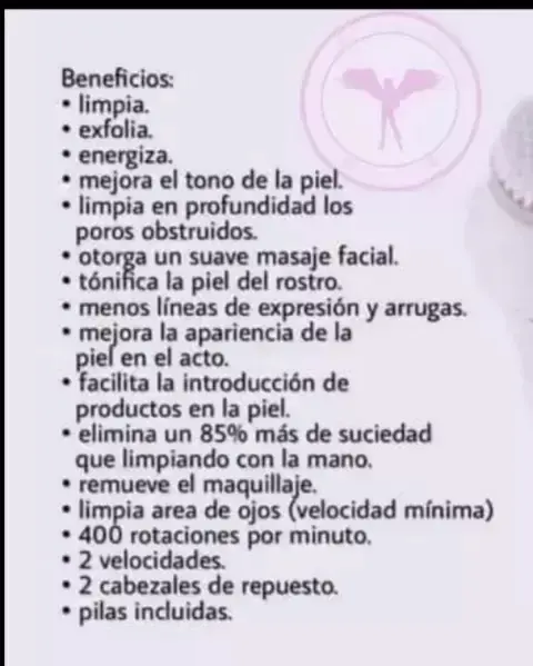 Cepillo eléctrico facial. Cepillo facial con un cepillo. Limpieza profunda y ahorro en tu producto hasta el 40%envío solo un cepillo nuevo, le falta el segundo, funciona con dos baterías.