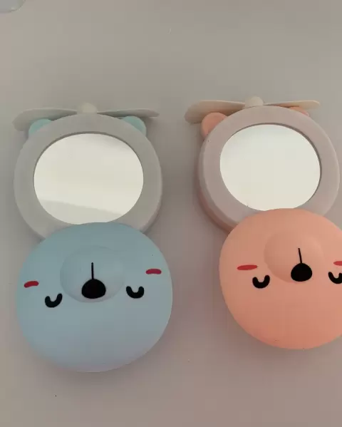 ESPEJO OSO (con luz y ventilador). Osito ventilador + luz led + espejoSúper bonito osito que te ayudará a refrescarte con su practico ventilador, y podrás usarlo como espejo junto con la Luz Led lo cual te dará la facilidad de maquillarte.Incluye cable usb para cargarlo y es súper práctico Medidas: 8.5 cm de ancho y 9 cm de largoContamos con dos colores, por favor especifica cuál es el de tu preferencia!